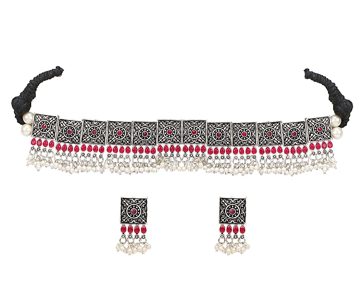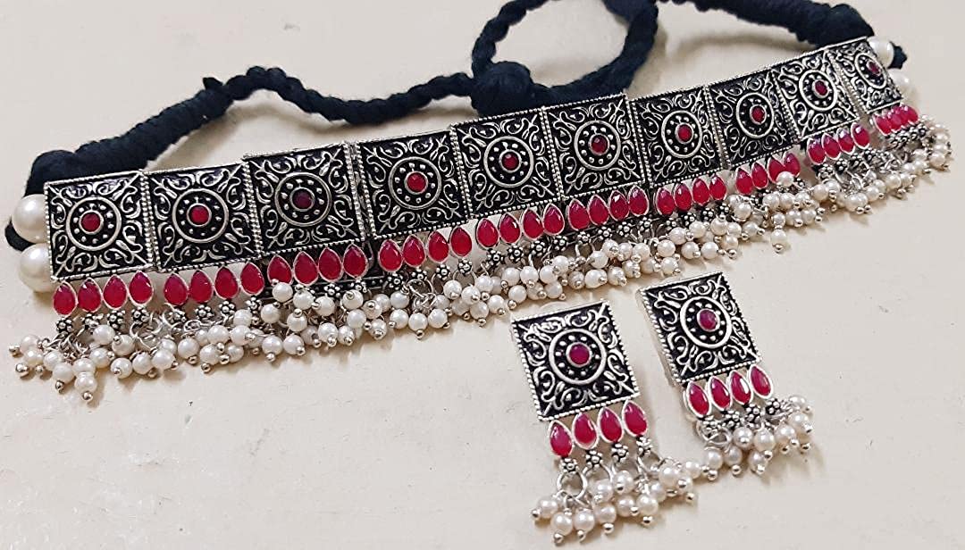 • Latest traditional oxidised silver necklace jewellery set
