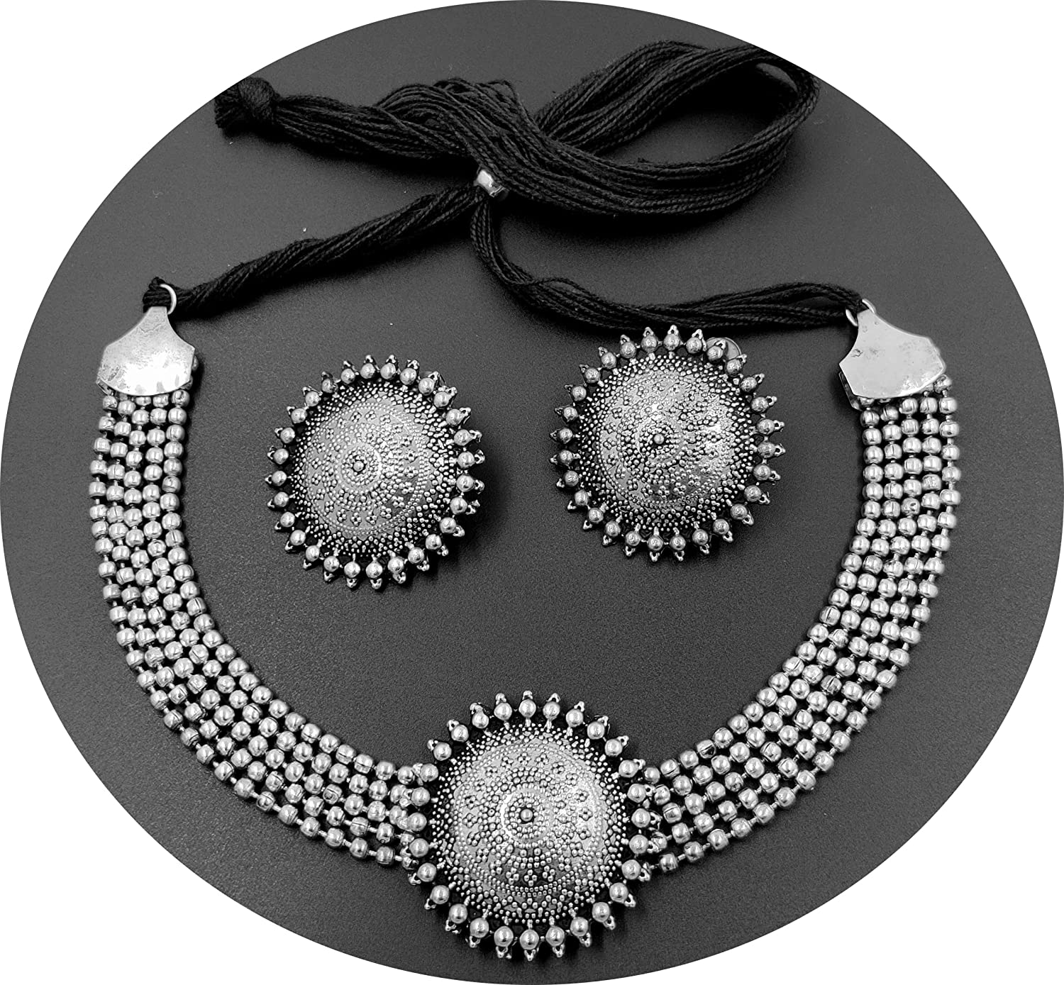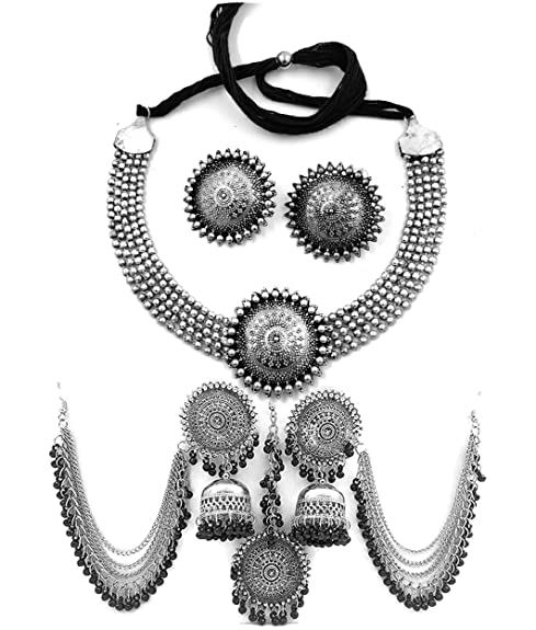 Meenaakri Ghungroo Necklace Set With Bracelet Ring