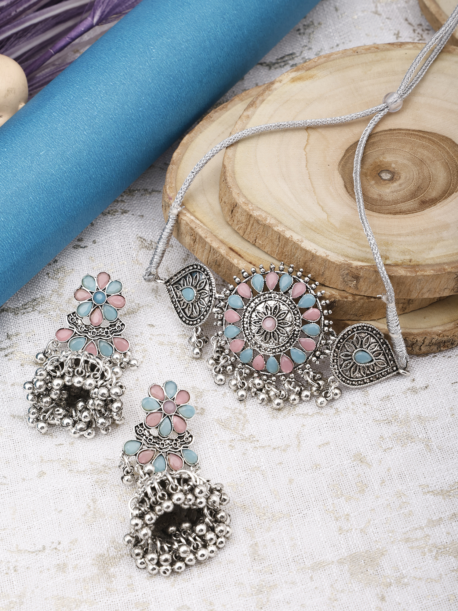 • Latest traditional oxidised silver necklace jewellery set