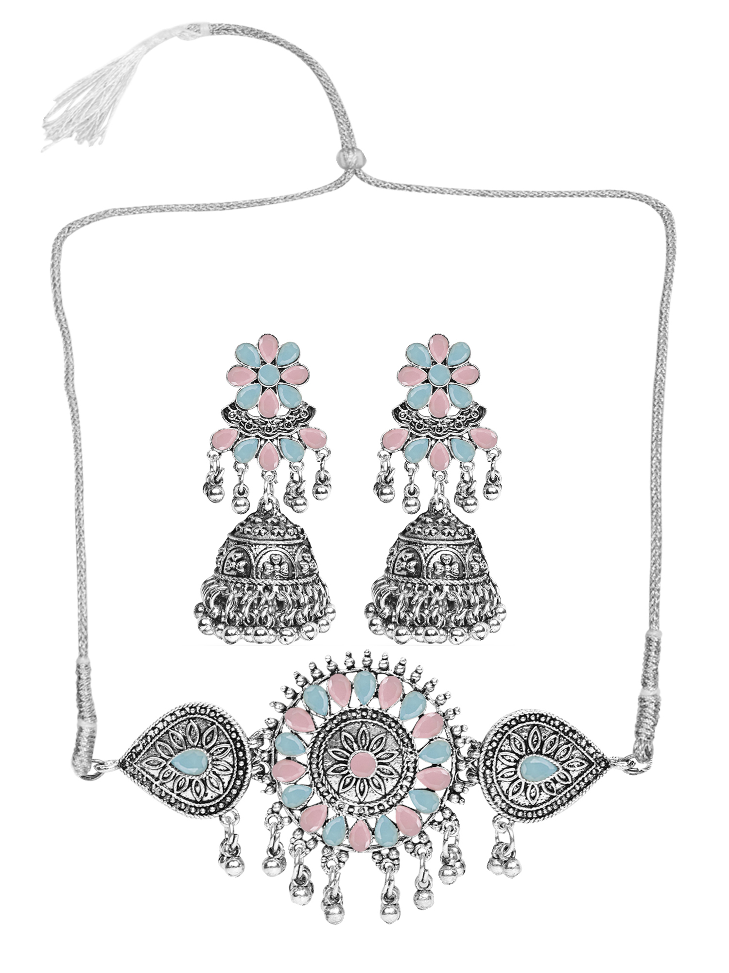 • Classic look Silver Oxidised Necklace set with Jhumka earrings for women to wear,