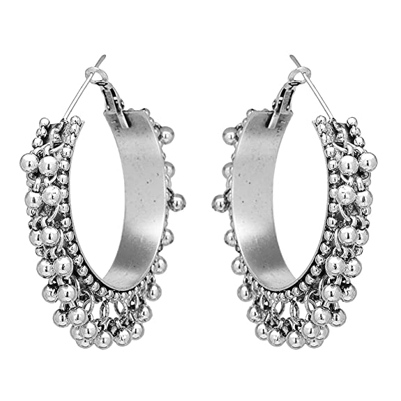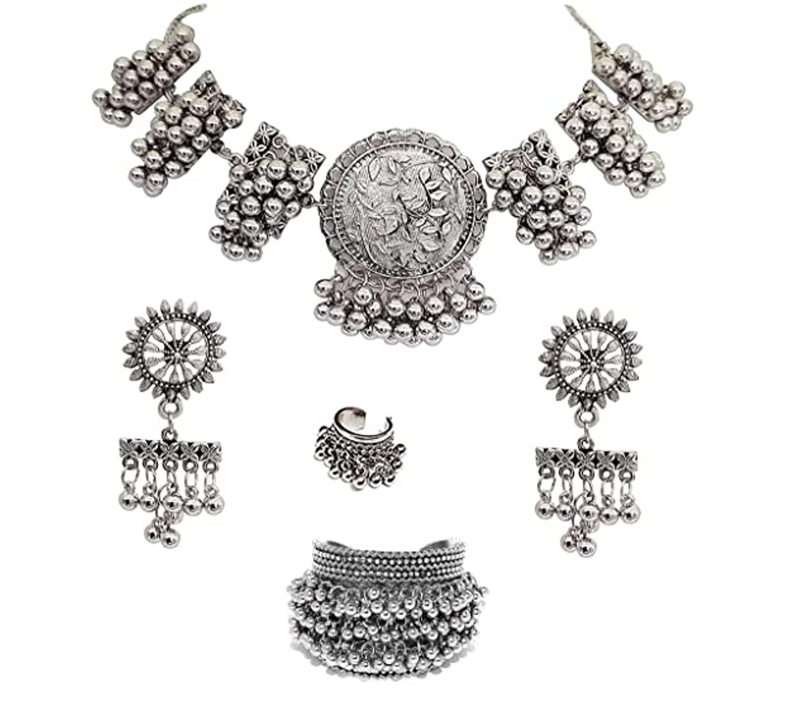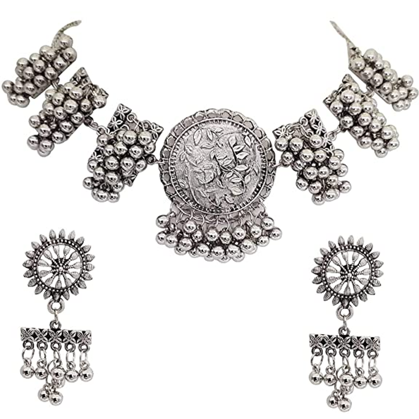 - Classic look Silver Oxidised Necklace set with Jhumka earrings for women to wear,