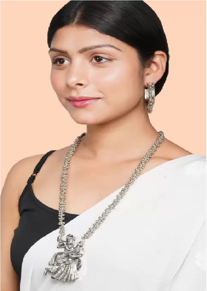 • Classic look Silver Oxidised Necklace set with Jhumka earrings for women to wear,
